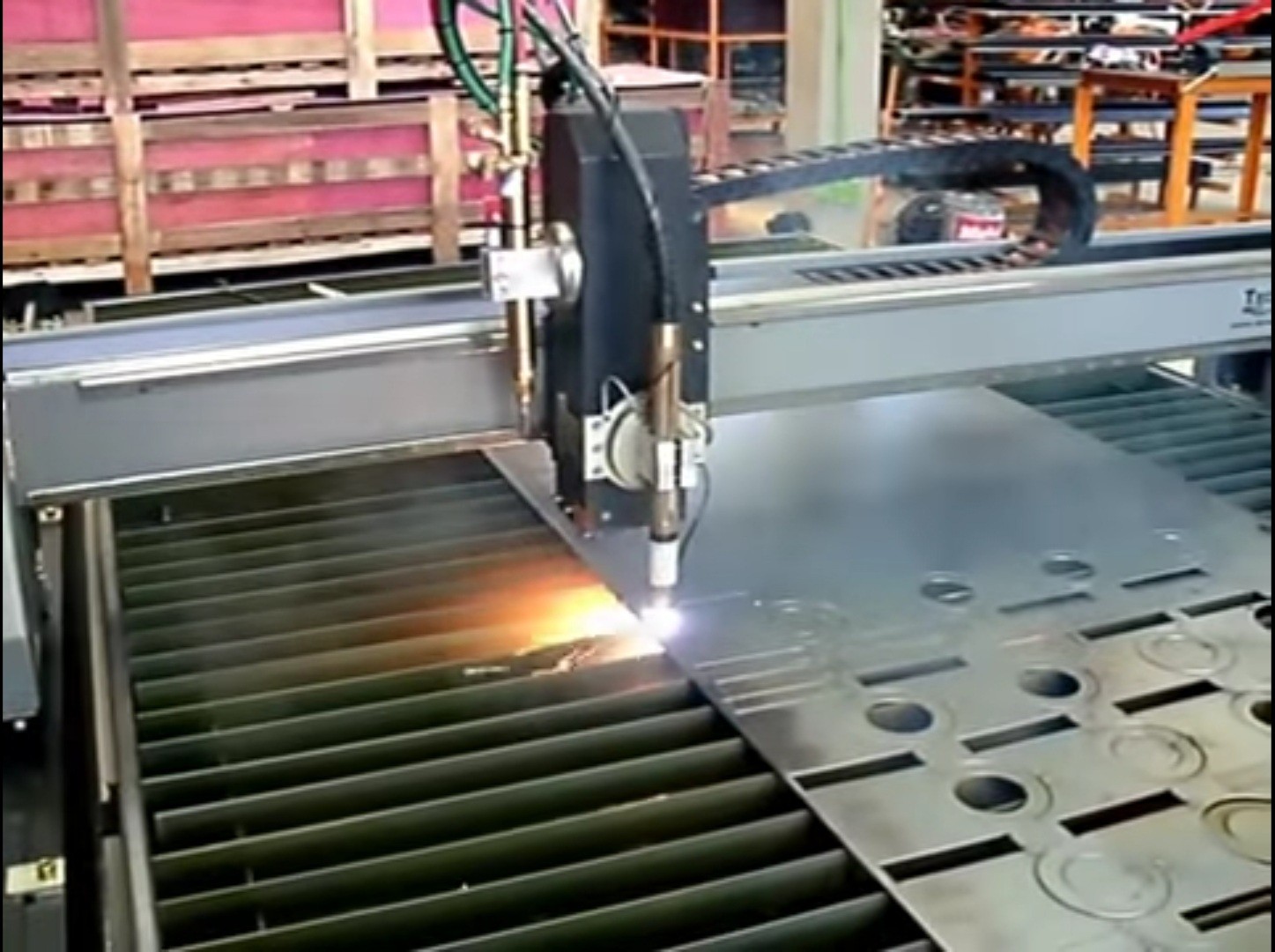 Cortes computadorizados diversos, com mesa de CNC plasma (chapas até 3000 x 6000 x 100mm espessura e tubos de até 6000 x 400 x 16 mm espessura).